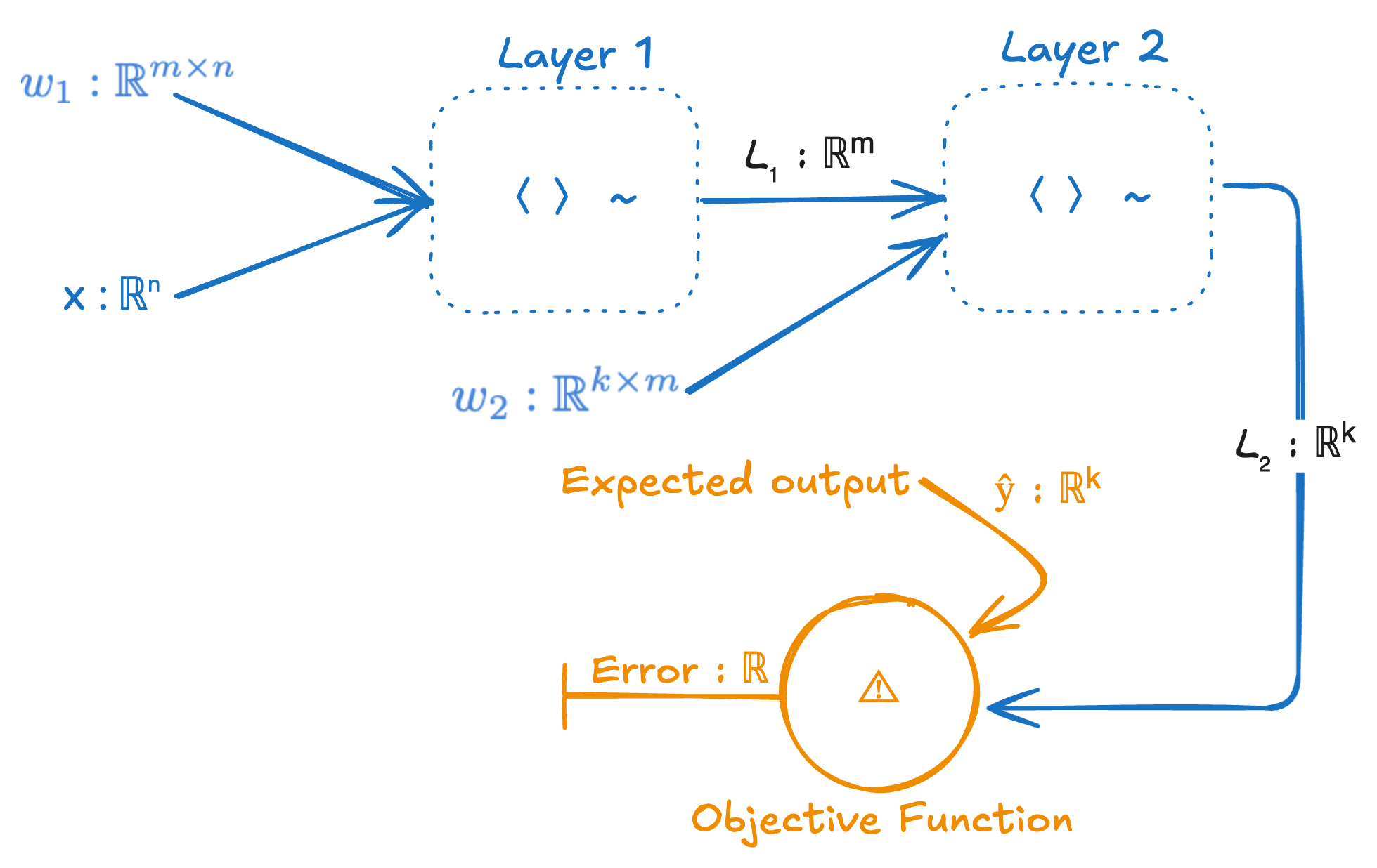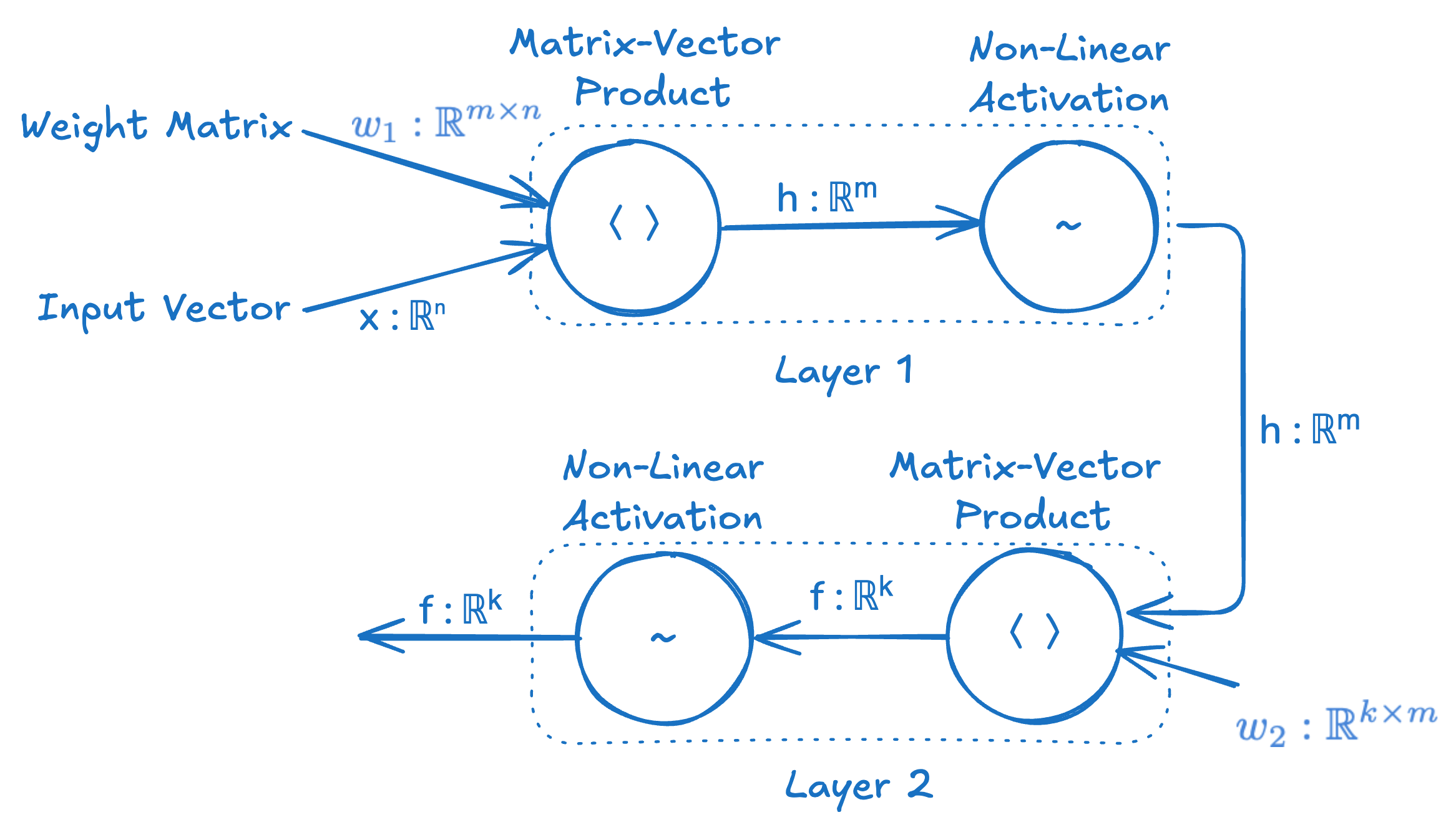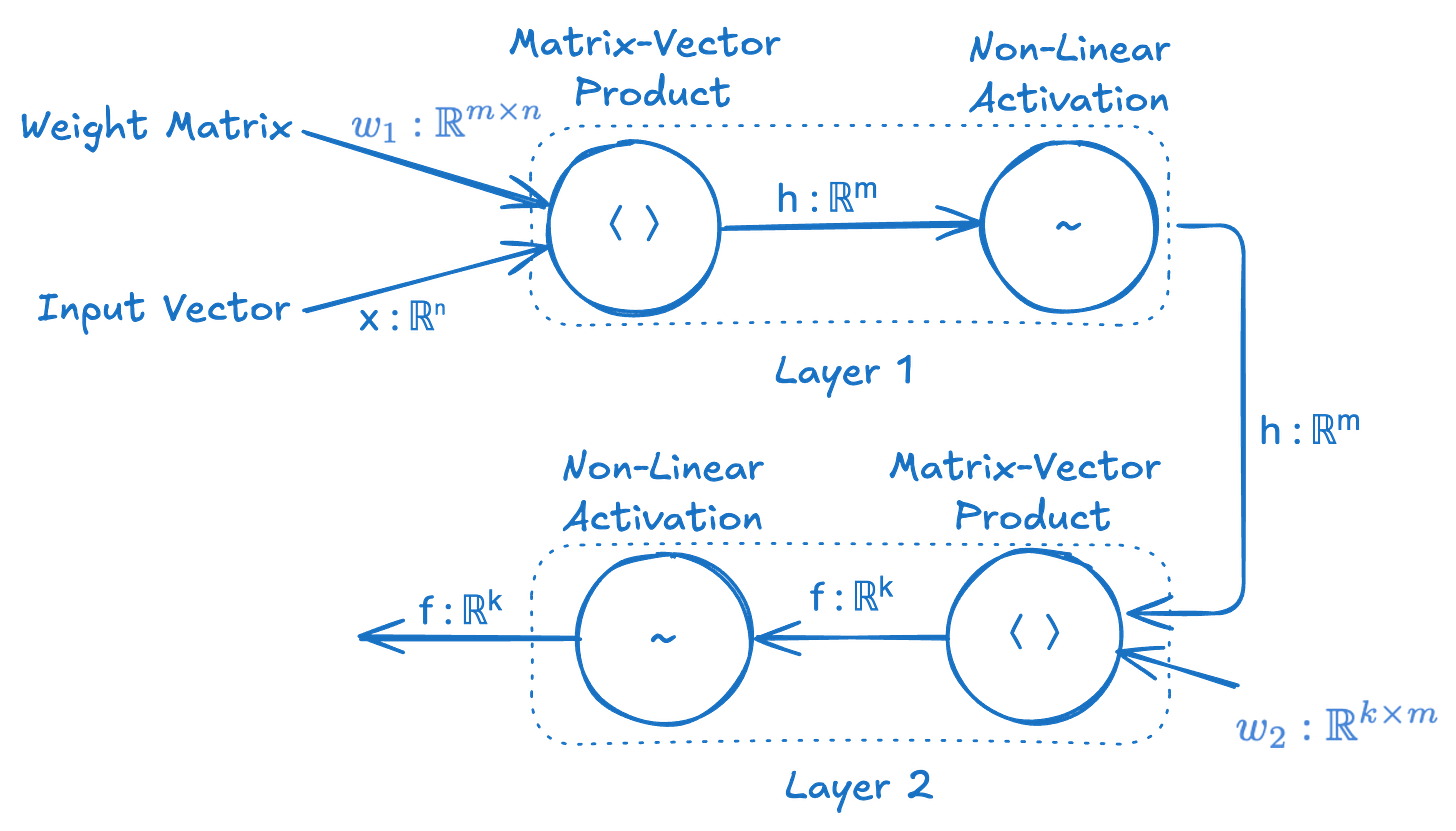# weights w₁ ∈ ℝᵐˣⁿ, w₂ ∈ ℝᵏˣᵐ