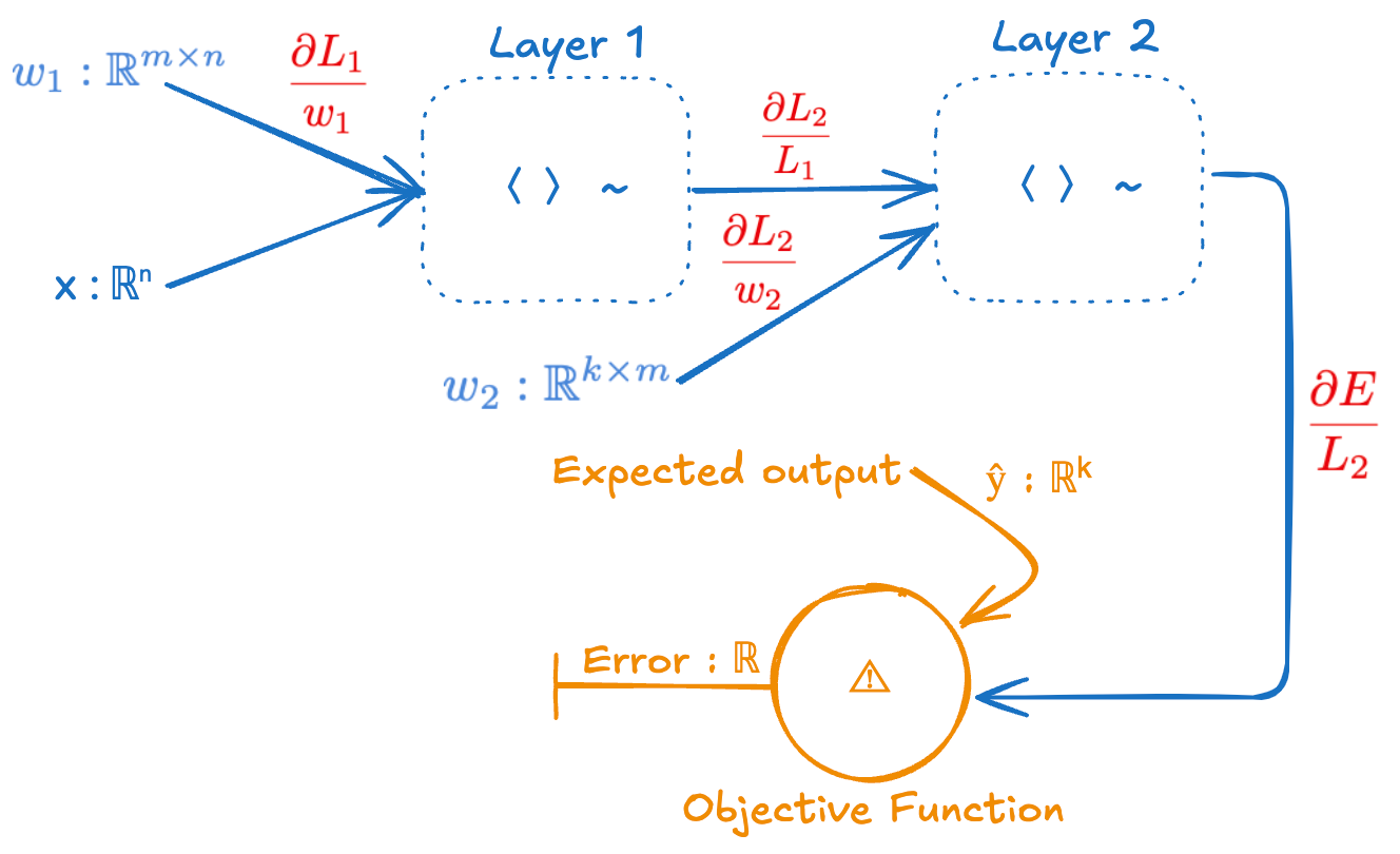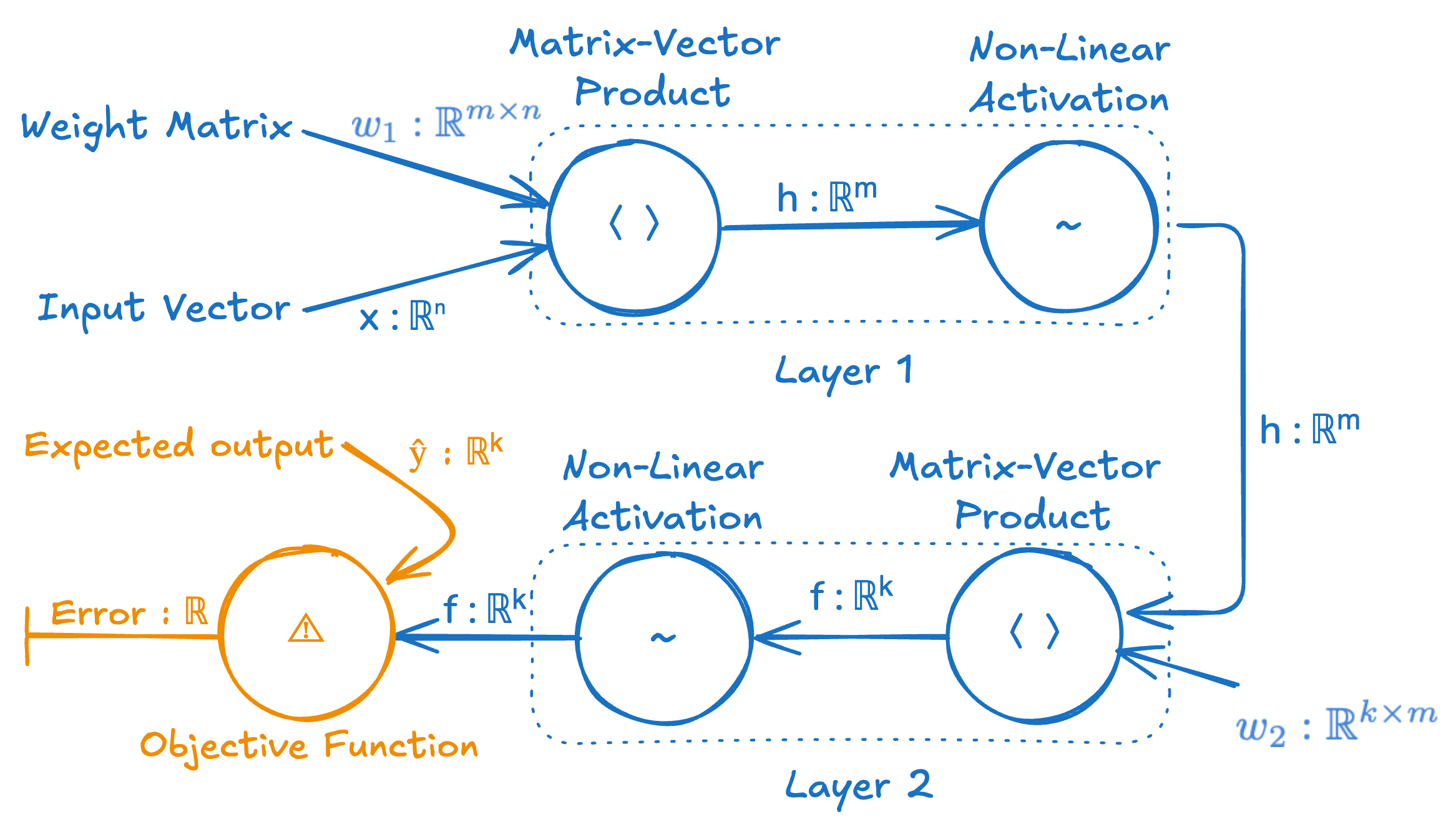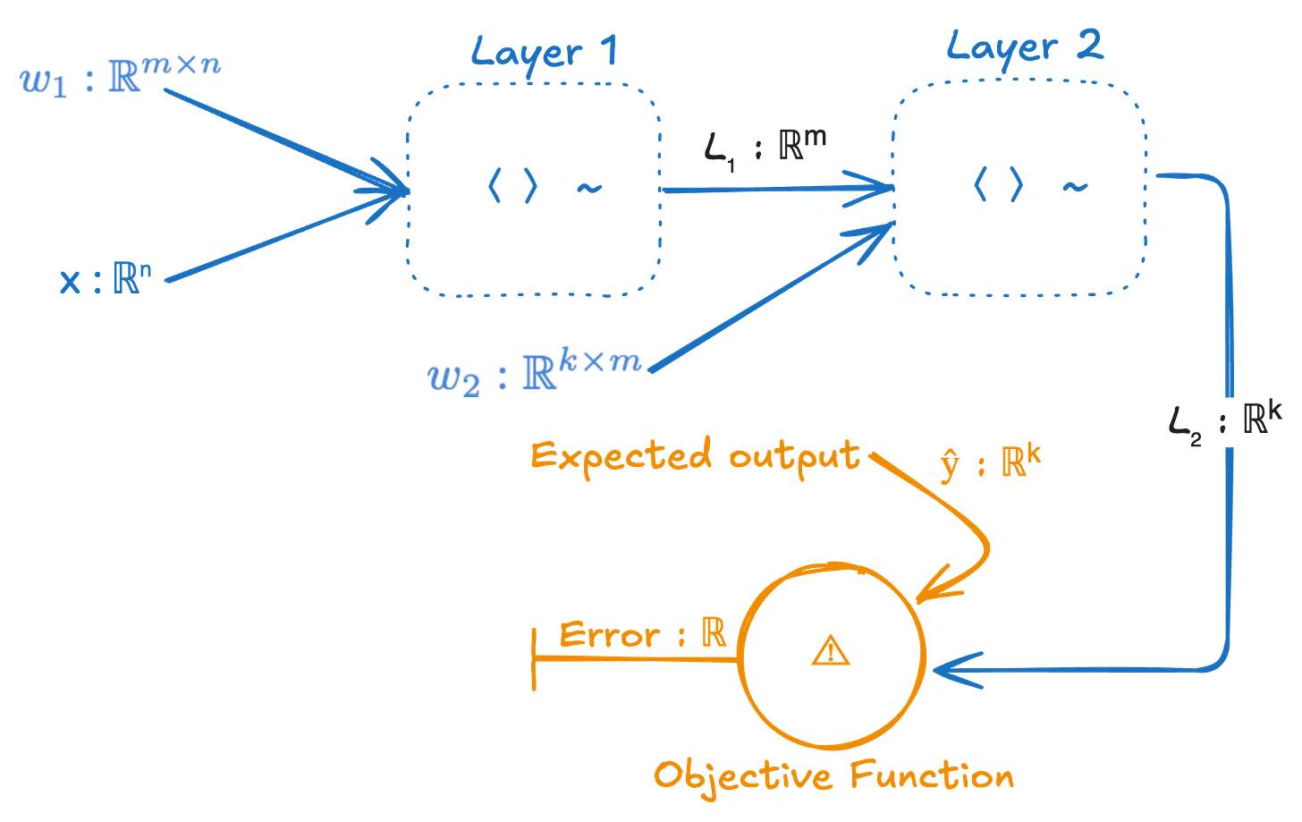 # weights w₁ ∈ ℝᵐˣⁿ, w₂ ∈ ℝᵏˣᵐ